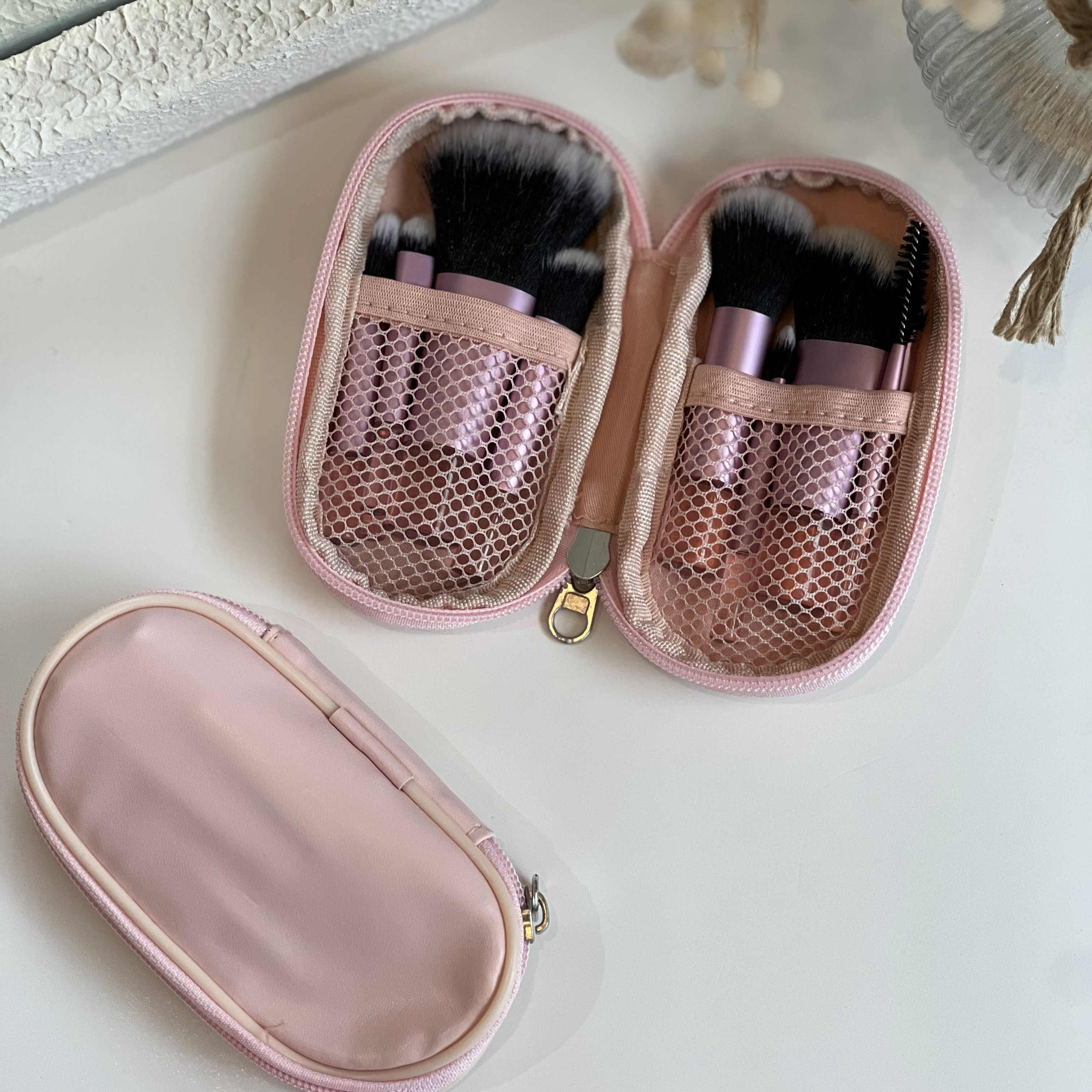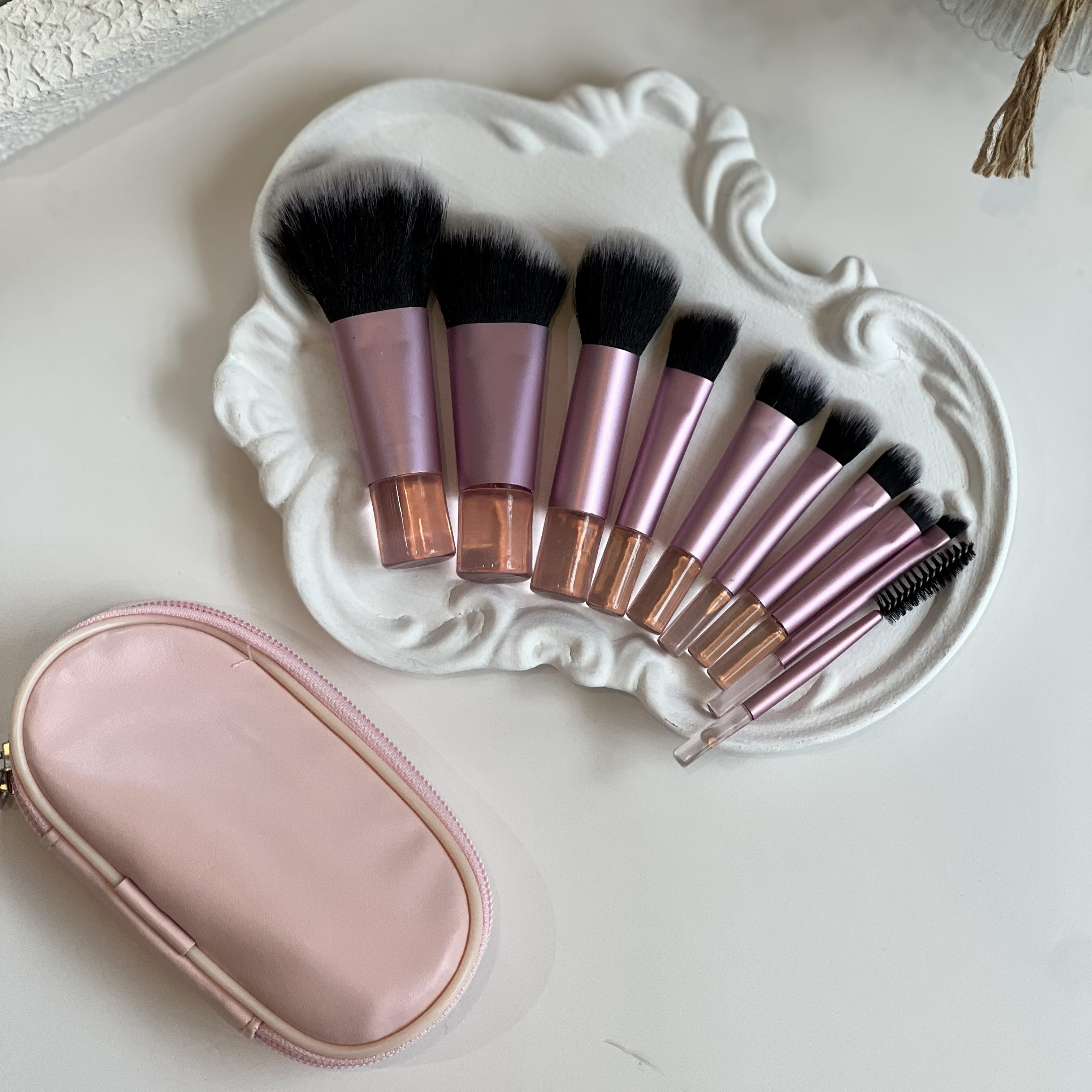 ست براش 10 تکه مسافرتی مینی در رنگهای » صورتی موجوده تعداد داخل بسته: 10 عدد براش + 1 عدد کیف کیفیت بالا تراکم بالا مناسب برای پودر،کرم پودر، سایه، رژگونه بسیار سبک استفاده آسان قابل شستشو ساخته شده از الیاف مصنوعی با کیفیت