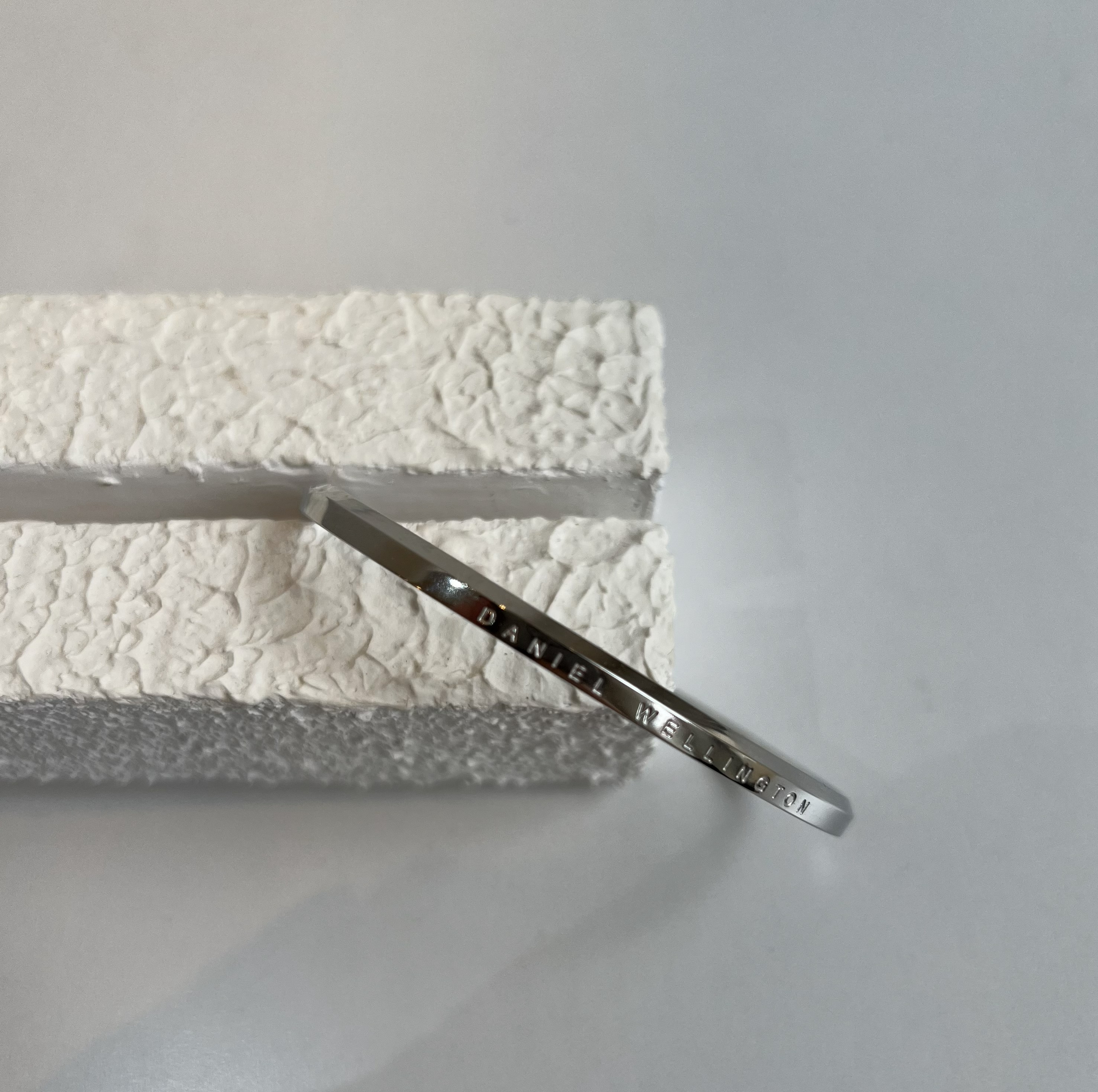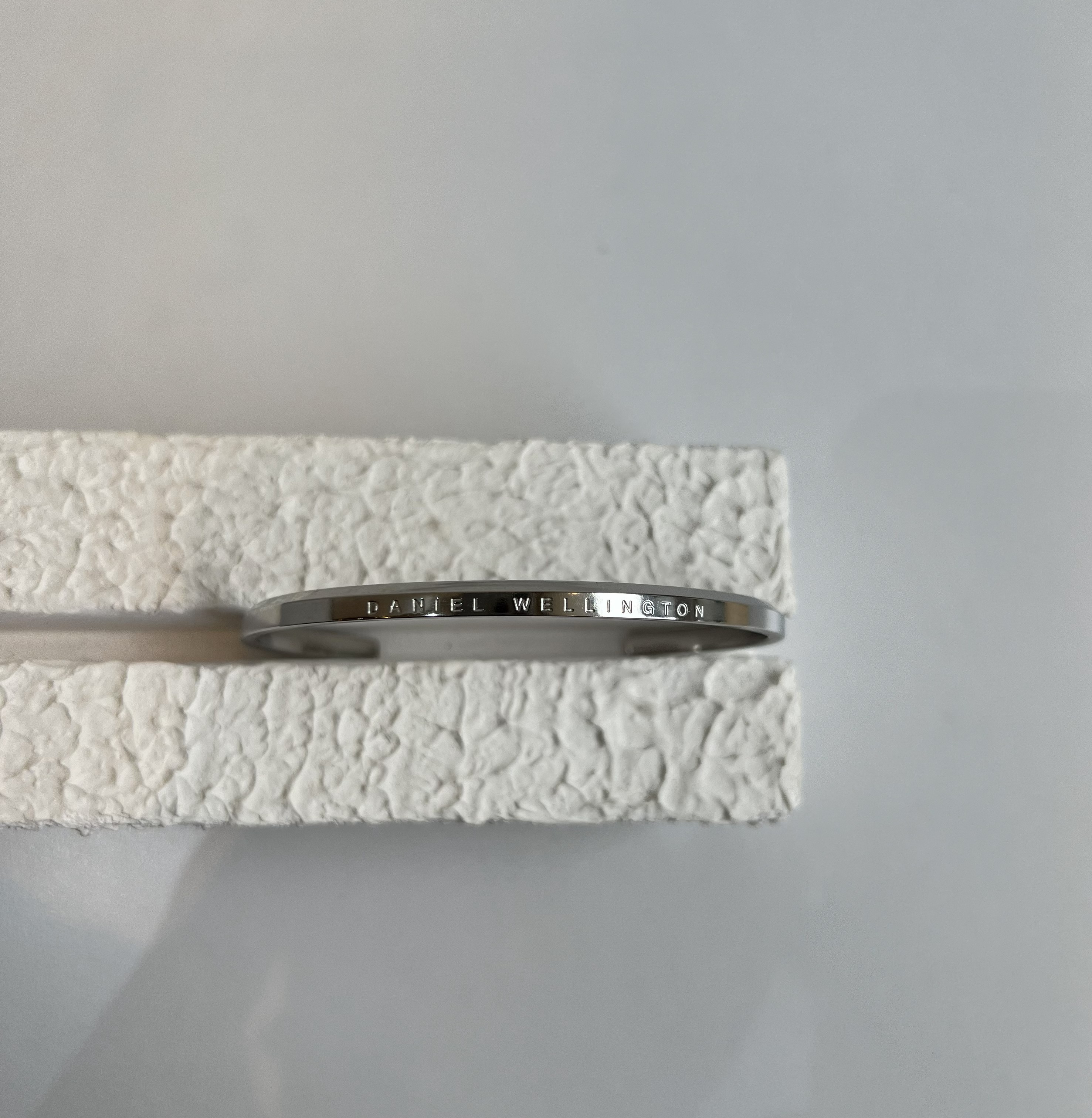 بنگل استیل نقره ای برند دنیل ولینگتون با حک نام برند روی کار مناسب برای خانم ها و آقایان رنگ ثابت و تضمینی مناسب برای استفاده روزمره