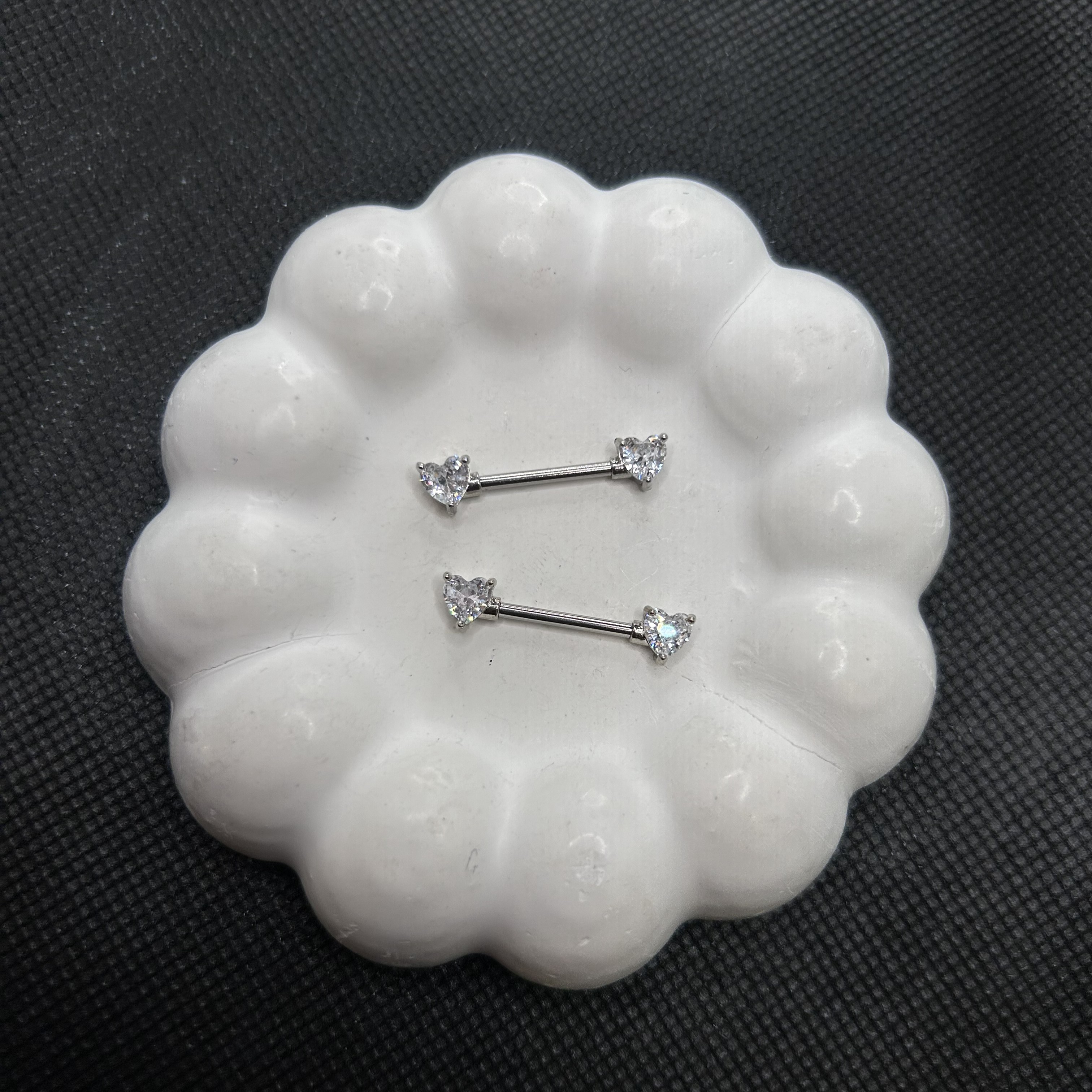 پیرسینگ استیل نقره ای نیپل با نگین قلب در دو طرف