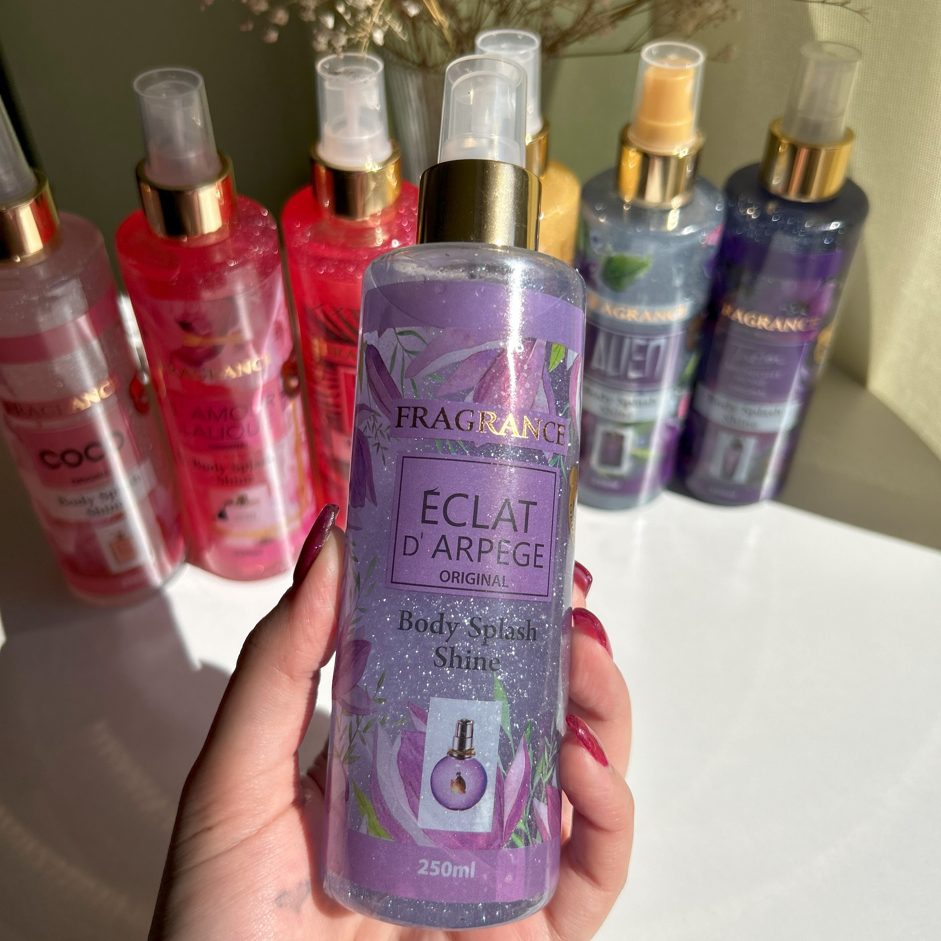 شاین دار و خوشبو کننده بدن مناسب بانوان آبرسان پوست ماندگاری بسیار بالا مناسب برای تمام قسمت های بدن با رایحه ای مشابه ادکلن همنام